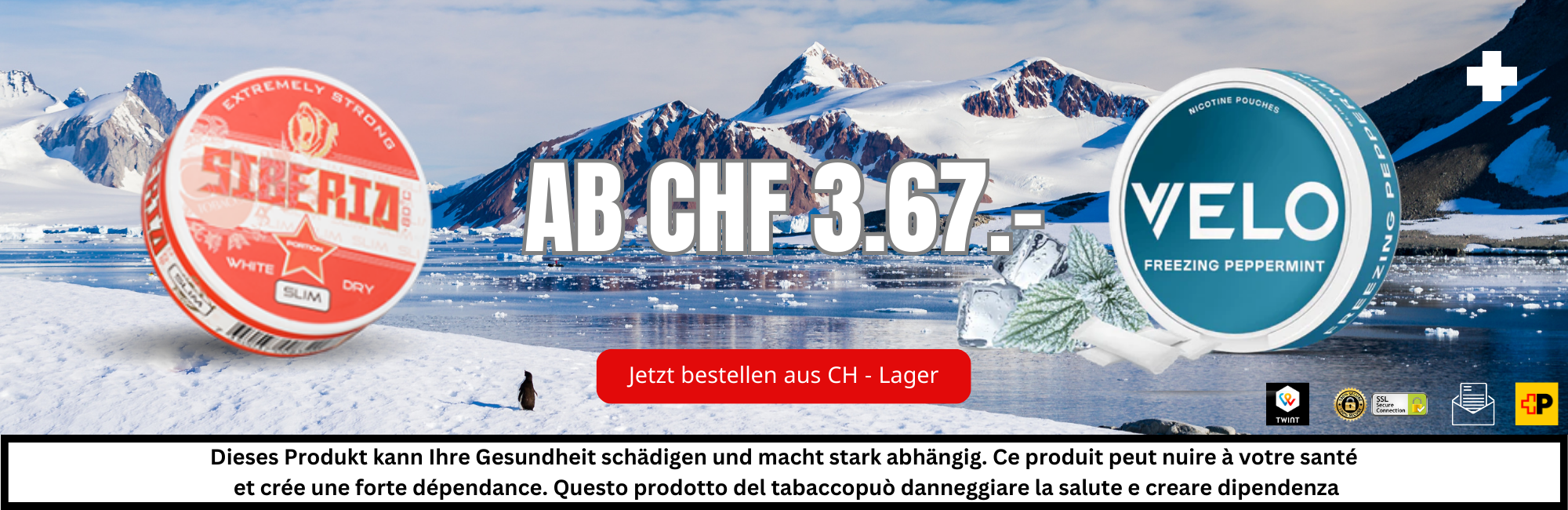 Jetzt bequem online Vapes kaufen, Snus kaufen oder Schnupftabak kaufen, direkt aus der Schweiz, schnell geliefert und immer frisch.